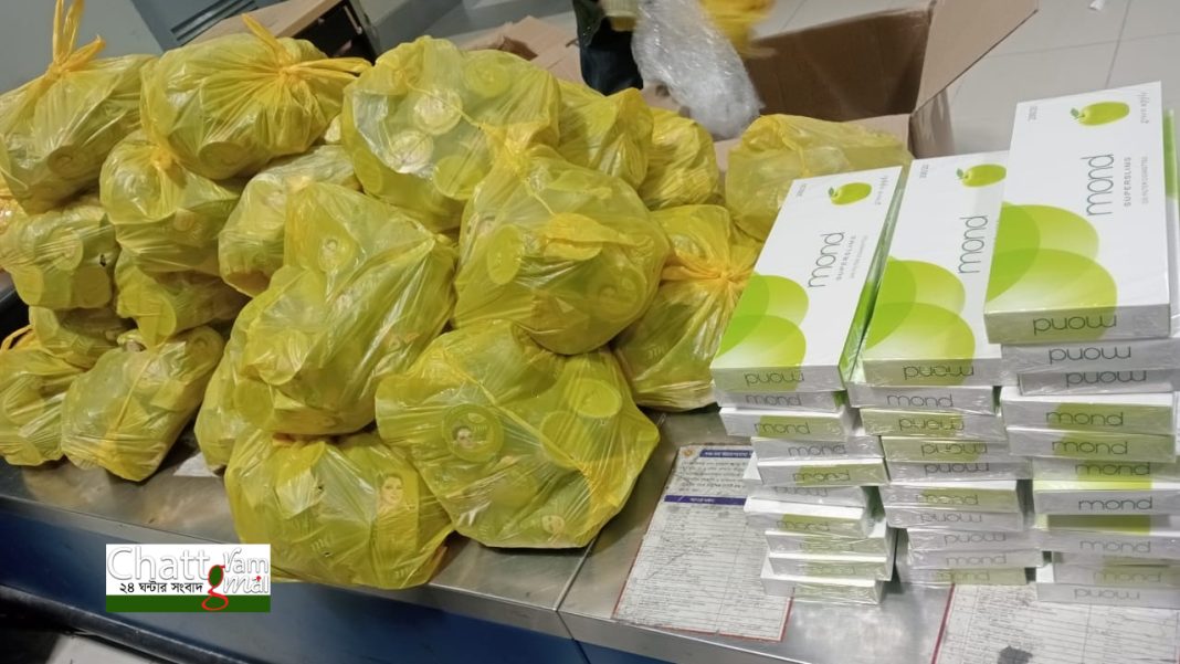 কাস্টমস কর্মকর্তারা জানান, দুবাই থেকে একটি ফ্লাইটে রোববার রাতে চট্টগ্রাম পৌঁছেন ফেনী সদর উপজেলার বাসিন্দা মো. আরিফুল ইসলাম এবং চট্টগ্রামের রাউজান উপজেলার বাসিন্দা মোশাররফ হোসেন। দুই যাত্রী ইমিগ্রেশন শেষে কাস্টমসের গ্রিন চ্যানেল পার হওয়ার সময় তাদের ব্যাগেজ তল্লাশি করা হয়। এসময় তাদের ব্যাগেজ থেকে ১৬৫ কার্টুন মন্ড সিগারেট এবং ২ হাজার ৭৬ পিস আমদানি নিষিদ্ধ বিউটি ক্রিম জব্দ করা হয়।