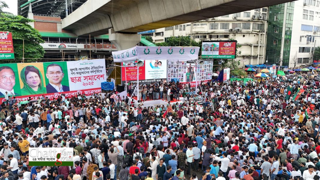 কোরআন তেলাওয়াতের মাধ্যমে জুলাই-আগস্ট গণঅভ্যুত্থানের বর্ষপূর্তি উপলক্ষ্যে জাতীয়তাবাদী ছাত্রদলের ছাত্র সমাবেশ শুরু হয়েছে।