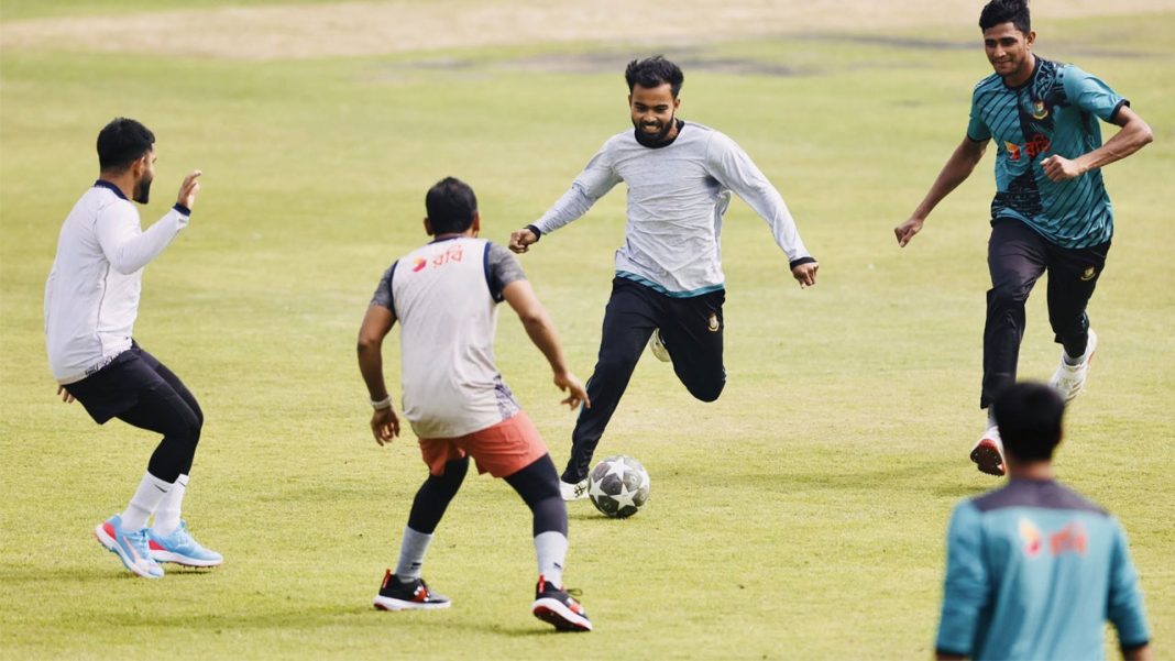 টি-টোয়েন্টি বিশ্বকাপে অংশ না নেওয়ায় এই সময়ে নতুন একটি টুর্নামেন্টের আয়োজন করেছে বাংলাদেশ ক্রিকেট বোর্ড (বিসিবি)। এই টুর্নামেন্টের অংশ হিসেবেই মিরপুরে অনুশীলন করছেন ক্রিকেটাররা। আজ সেখানে গা গরম করতে ফুটবল খেলতে দেখা যায় ক্রিকেটারদের।