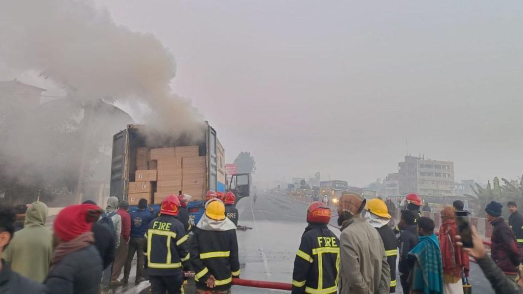 চট্টগ্রামের মিরসরাইয়ে ঢাকা-চট্টগ্রাম মহাসড়কের ওপর চলন্ত অবস্থায় একটি কাভার্ডভ্যানে আগুন লাগার ঘটনা ঘটেছে।