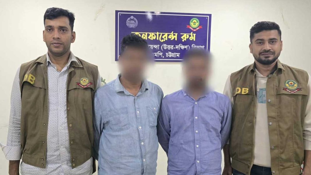 চট্টগ্রামে ডিবি পুলিশ পরিচয়ে প্রবাসীর কাছ থেকে স্বর্ণালংকার ও নগদ অর্থ ছিনতাইয়ের ঘটনায় দুইজনকে গ্রেপ্তার করেছে পুলিশ। এ সময় ছিনতাই করা স্বর্ণালংকার ও বিক্রির নগদ অর্থ উদ্ধার করা হয়েছে।