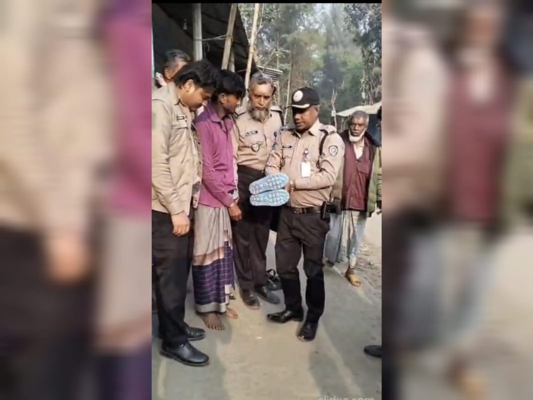 গ্রেপ্তার ইসমাইল হোসেন (৪০) উপজেলার কালাদরাফ ইউনিয়নের ৮নম্বর ওয়ার্ডের রামহরি তালুক গ্রামের উত্তর চাকলা রাজের বাড়ি মৃত ফয়েজ আহমদের ছেলে।