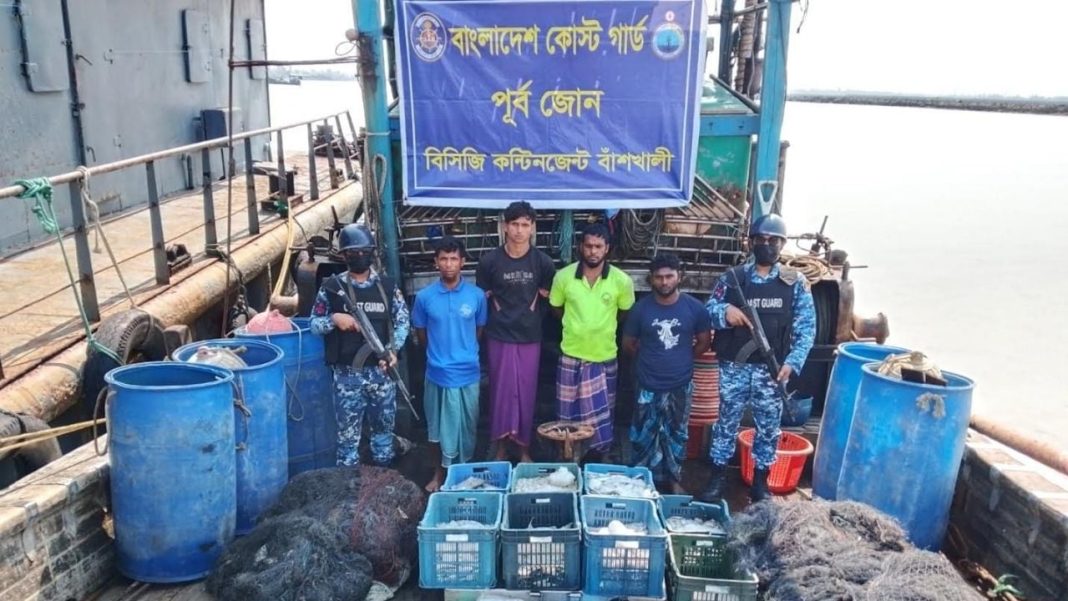 চট্টগ্রামের বাঁশখালীতে অভিযান চালিয়ে একটি অবৈধ আর্টিসনাল ট্রলিং বোট, জাল ও বিপুল পরিমাণ সামুদ্রিক মাছসহ চারজন জেলেকে আটক করেছে বাংলাদেশ কোস্ট গার্ড।