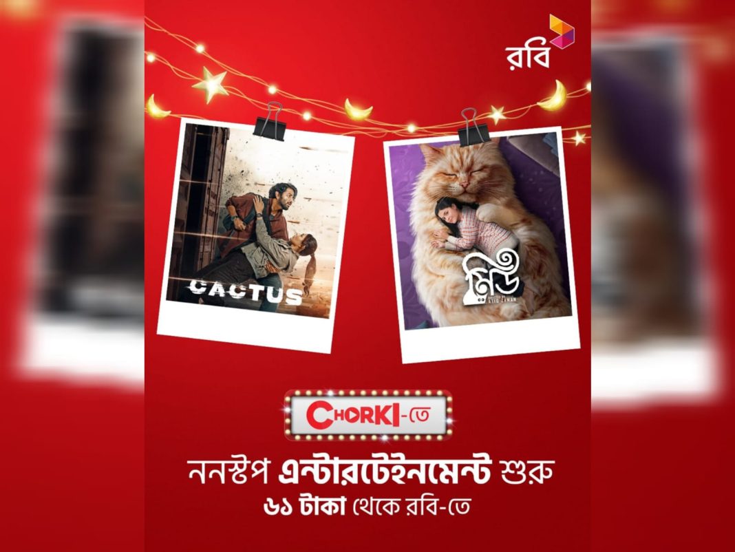 ঈদ উপলক্ষে গ্রাহকদের জন্য অনন্য কনটেন্ট এবং প্রিমিয়াম বিনোদনের আকর্ষণীয় অফার চালু করেছে দেশের অন্যতম শীর্ষ মোবাইল ফোন অপারেটর রবি আজিয়াটা পিএলসি। এজন্য জনপ্রিয় ওটিটি প্ল্যাটফর্ম চরকির সাথে একটি অংশীদারিত্ব স্থাপন করেছে কোম্পানিটি। চুক্তির আওতায় সহজ সাবস্ক্রিপশন এবং সাশ্রয়ী মূল্যে চরকির জনপ্রিয় সিনেমা, অরিজিনাল সিরিজ এবং বিশেষ ঈদ রিলিজ উপভোগ করতে পারবেন রবির গ্রাহকরা।